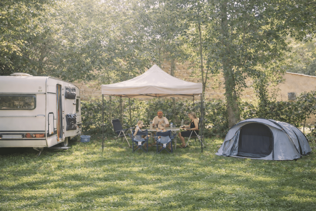 Chaque emplacement dispose notamment de deux prises électriques (française et européenne), d’eau et d’électricité incluses dans le prix.